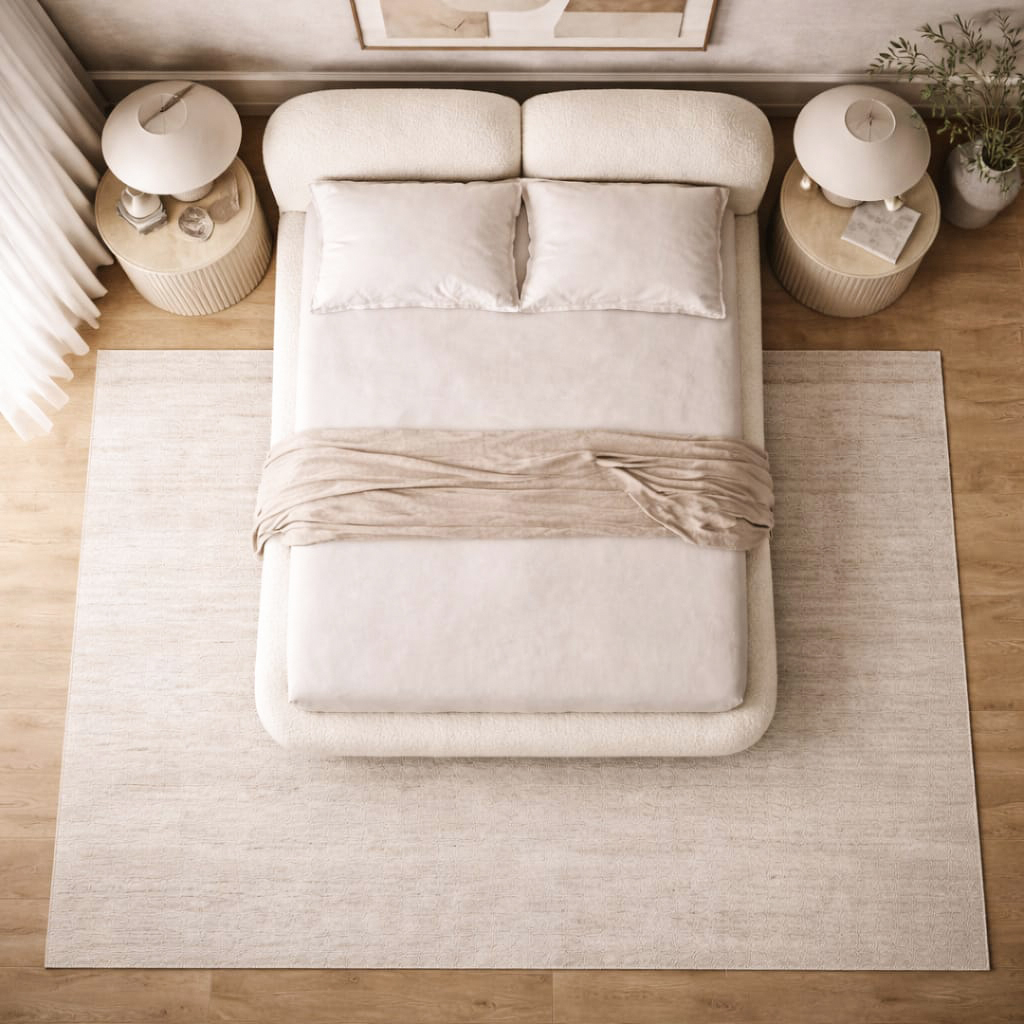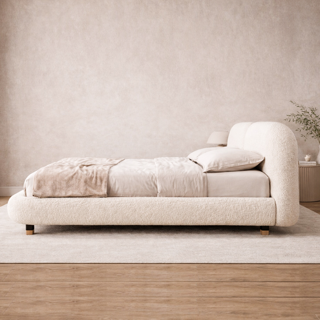 Wrapped in our premium bouclé fabric, it offers a multi-dimensional texture that catches the light beautifully, making your sleeping space feel larger, brighter, and infinitely more inviting.