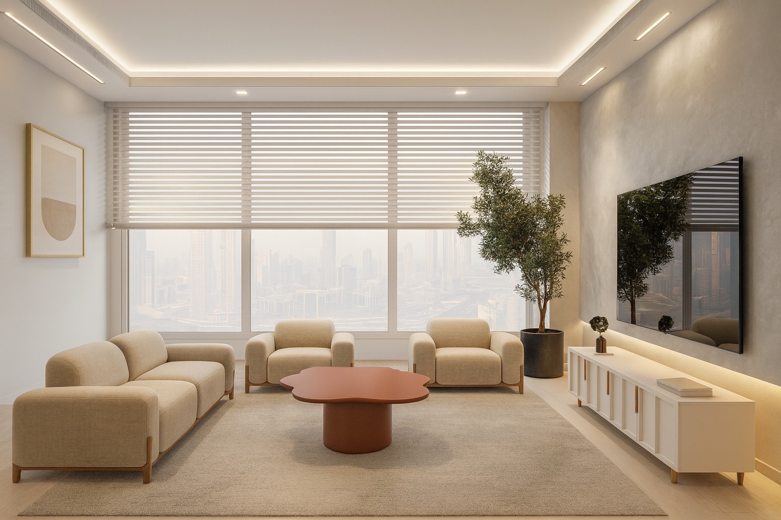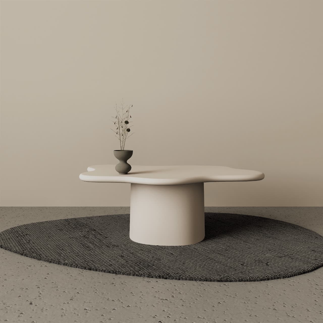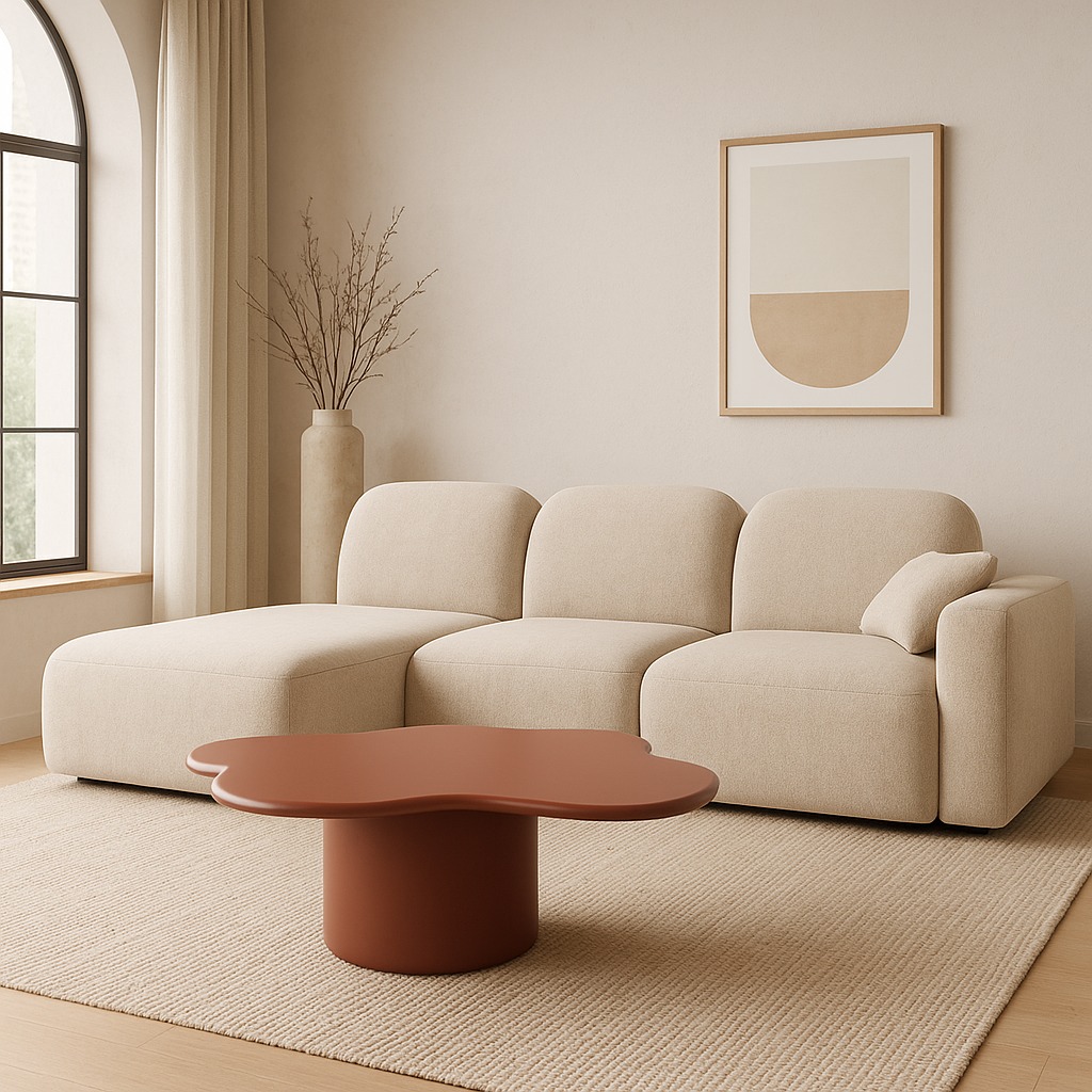 Bring a sculptural edge to your living room with the Aura Coffee Table. Featuring a unique, fluid “cloud” silhouette and a bold terracotta matte finish, this piece combines modern minimalism with earthy warmth. Its sturdy oversized pedestal base provides a rock-solid foundation, while the smooth, irregular tabletop offers a sophisticated surface for your coffee and decor. A perfect statement piece for contemporary UAE homes looking for a designer touch.