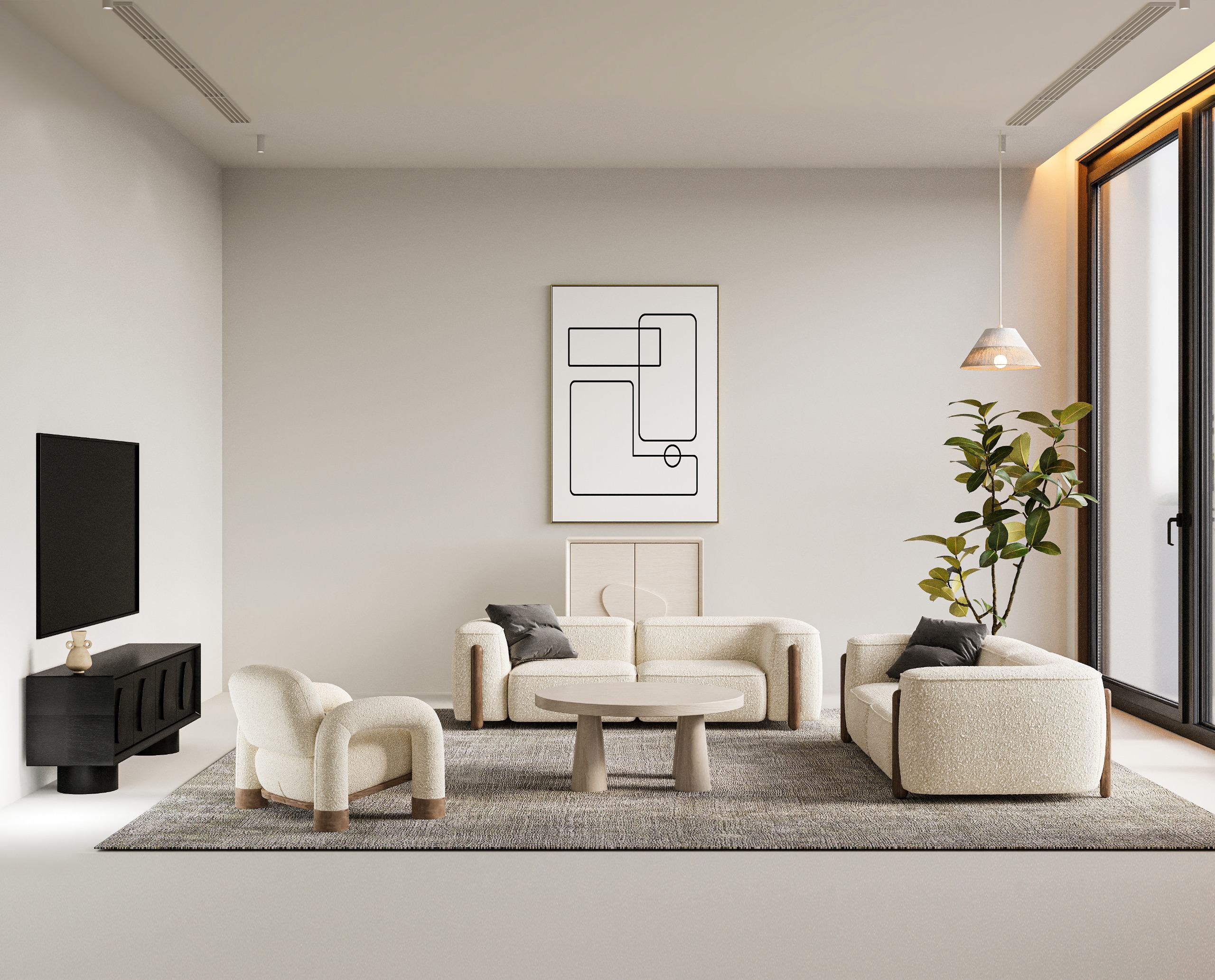 Experience unparalleled comfort and adaptable style with the “Elysian” Modular Sofa. Its invitingly soft, textured upholstery in a serene [Specify Fabric Type – e.g., luxurious shearling, plush teddy fabric] and a gentle off-white tone creates an atmosphere of calm sophistication. The modular design allows for versatile configurations, adapting effortlessly to your living space and lifestyle. The rounded forms and [Describe Side/Leg Detail – e.g., exposed solid wood end panels, discreetly hidden feet] add a touch of modern elegance. Handcrafted in the UAE with meticulous attention to detail, the “Elysian” Modular Sofa is a bespoke centerpiece designed for both luxurious lounging and flexible living.