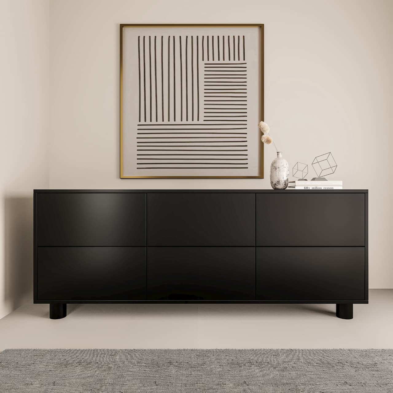 The “Eclipse” Dresser is a striking statement piece that effortlessly blends modern aesthetics with a touch of minimalist chic. Its distinctive design features a clean, rectangular silhouette with sleek, recessed drawer pulls, creating a sense of understated elegance. Crafted from solid wood with a contrasting trim, the “Eclipse” exudes warmth and sophistication. This versatile dresser offers ample storage space with smooth-gliding drawers, making it a functional and stylish addition to any bedroom.