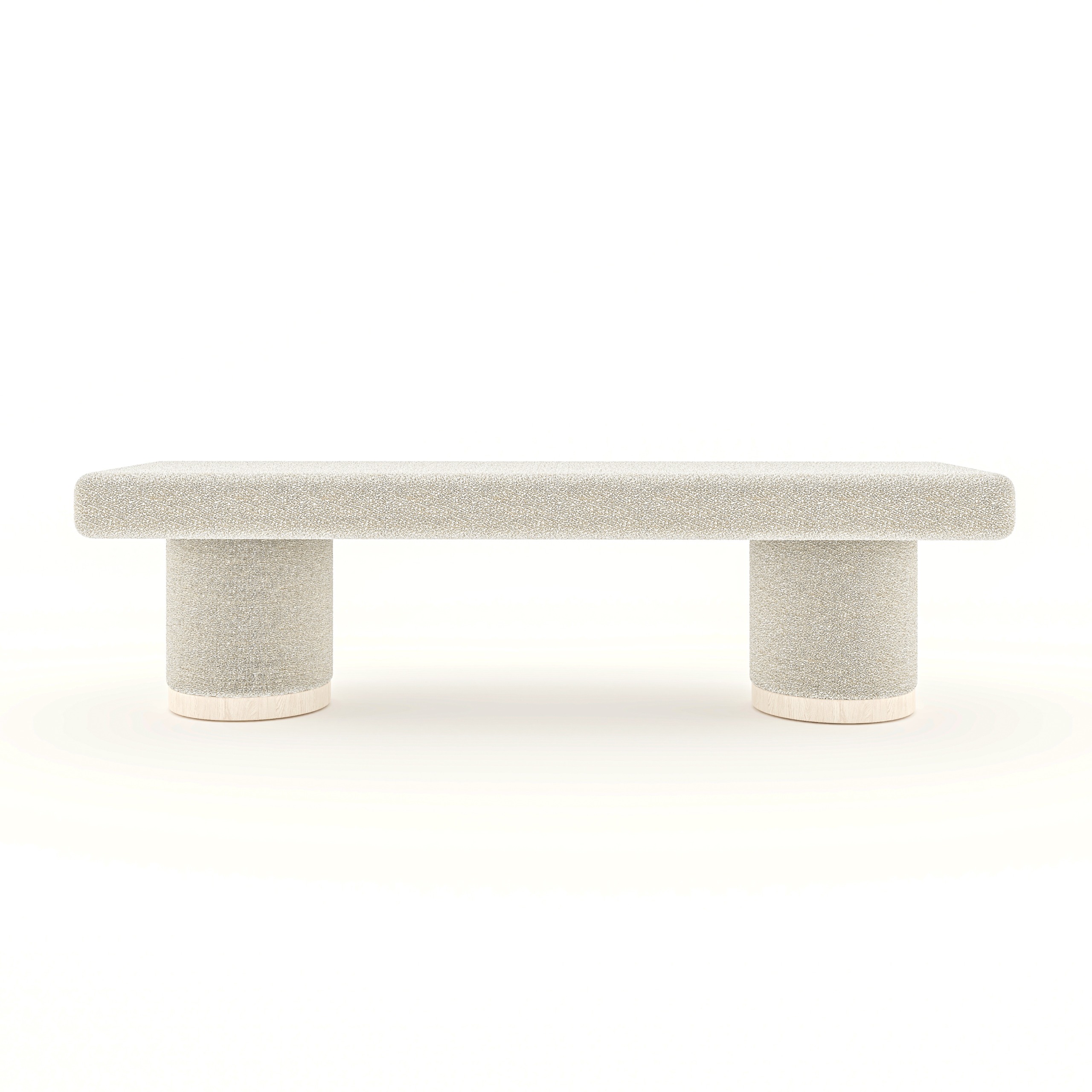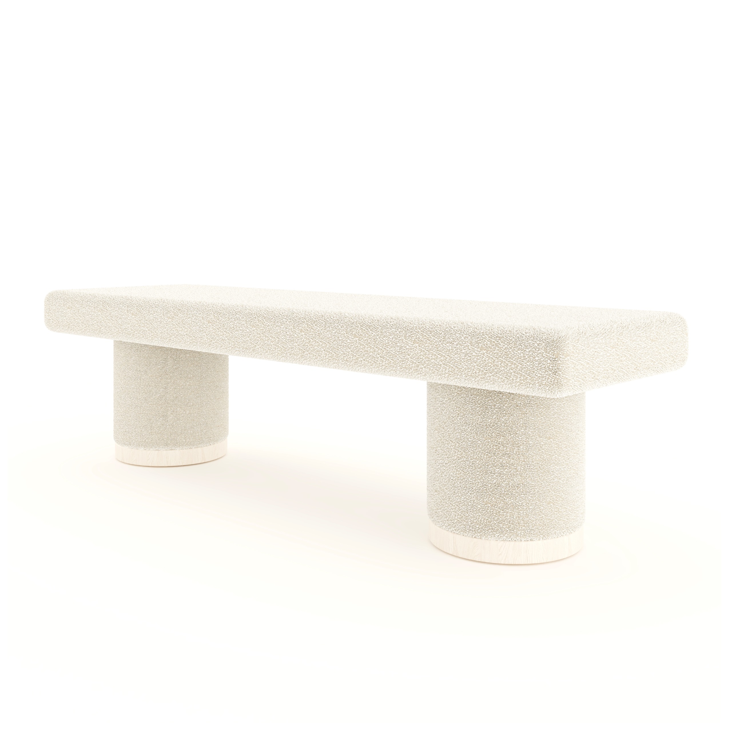 Bring an element of grounded sophistication to your interior with the “Terra Form Bench.” This distinctive piece features a substantial, rectilinear top upholstered in a richly textured, natural-toned fabric [Specify Fabric Type – e.g., organic cotton blend, nubby linen, textured wool] resting upon two solid, cylindrical supports finished with a refined [Specify Base Finish – e.g., smooth plaster effect, brushed metal band]. Handcrafted with care in the UAE, the “Terra Form Bench” embodies a harmonious blend of organic form and contemporary design. It serves beautifully as a statement seating element in hallways, living areas, adding a touch of understated European artistry to your home.